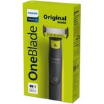 La Philips OneBlade QP2824/10 es una afeitadora híbrida que combina recorte, perfilado y afeitado en una sola herramienta. Su cuchilla de doble cara permite afeitar en ambas direcciones con precisión y control. Cuenta con un sistema de protección que reduce la irritación de la piel, ofreciendo un afeitado suave incluso en vellos largos.