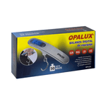 Balanza portátil para equipaje OP-623 con pantalla LCD azul, gancho de acero y modos de medición en gramos, kilogramos, libras y onzas. Ideal para viajes, permite pesar desde 10 g hasta 50 kg con función “hold” que congela el valor en pantalla. Diseño compacto de solo 15,8 cm de largo.