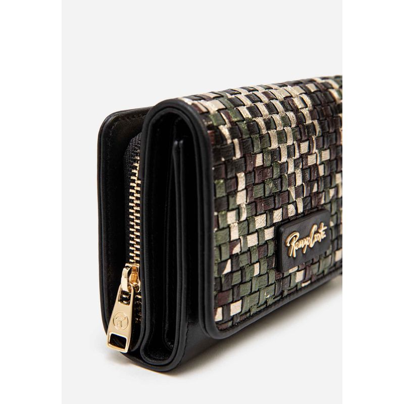 Billetera de cuero suave con aplicación tejida multicolor, ideal para quienes buscan un accesorio compacto con estilo auténtico. La Billetera Trama Luxe combina cuero liso al tacto con un frente entrelazado de tonos contrastantes que captan la luz y elevan cualquier look. Su interior está diseñado con ranuras funcionales para tarjetas, compartimentos para billetes y un espacio para tu documento de identidad. Un formato reducido que no pasa desapercibido: perfecta para acompañarte en movimiento sin perder carácter.