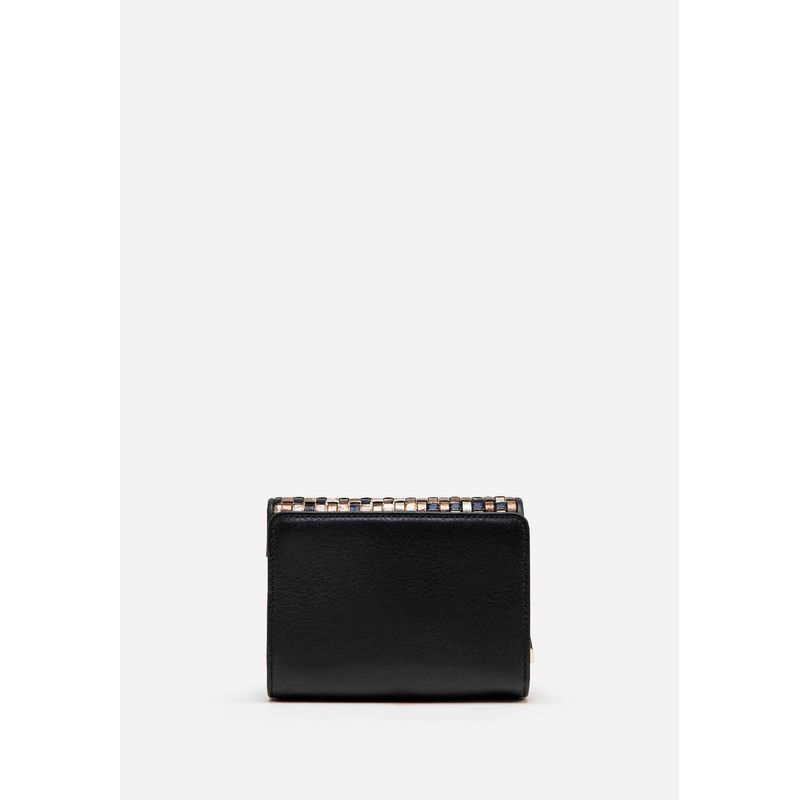 Billetera de cuero suave con aplicación tejida multicolor, ideal para quienes buscan un accesorio compacto con estilo auténtico. La Billetera Trama Luxe combina cuero liso al tacto con un frente entrelazado de tonos contrastantes que captan la luz y elevan cualquier look. Su interior está diseñado con ranuras funcionales para tarjetas, compartimentos para billetes y un espacio para tu documento de identidad. Un formato reducido que no pasa desapercibido: perfecta para acompañarte en movimiento sin perder carácter.