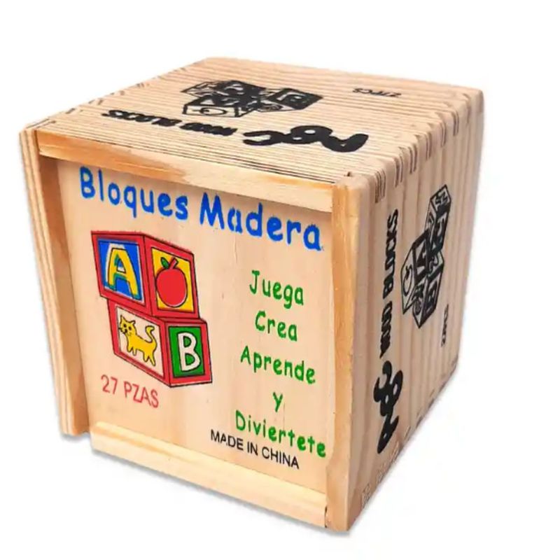 Set de bloques de madera didácticos de 27 piezas, ideal para que los niños jueguen, creen y aprendan. Incluye bloques de diferentes formas y colores que estimulan la imaginación, la coordinación y el aprendizaje de figuras, colores y equilibrio. Fabricados con madera resistente y pintura no tóxica, perfectos para el juego seguro y educativo. Imágenes referenciales.