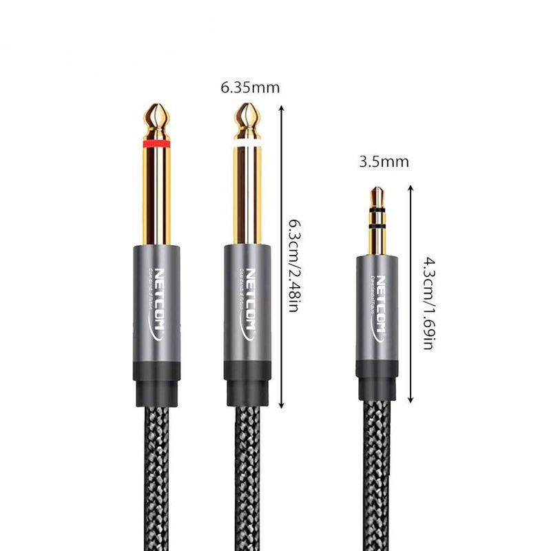 El cable de audio Plug 3.5mm macho a 2 Plug 6.35mm macho de NETCOM es la solución ideal para conectar dispositivos portátiles (como celulares, tablets, laptops o reproductores MP3) a mezcladores, amplificadores o equipos de sonido profesional. Ofrece una transmisión de audio limpia, estable y sin interferencias, perfecta para grabaciones, actuaciones en vivo o entornos multimedia.