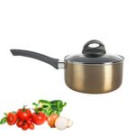 La Cacerola Oster® Antiadherente 18CM con Tapa Herscher Gold 136802 02 es un utensilio de cocina de alta calidad, ideal para quienes buscan facilidad y eficiencia al cocinar. Aquí tienes una descripción detallada de sus características: