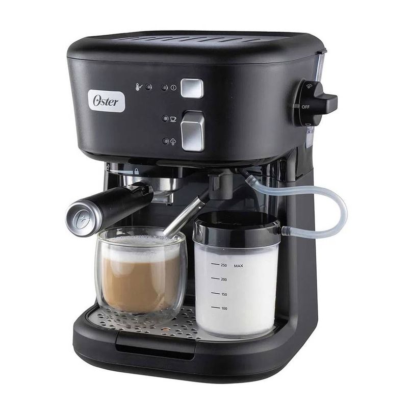 Esta cafetera Oster® es una excelente opción para los amantes del café que desean preparar sus propias bebidas de espresso y capuccino en casa. Con su diseño elegante y negro, se adapta a cualquier cocina.