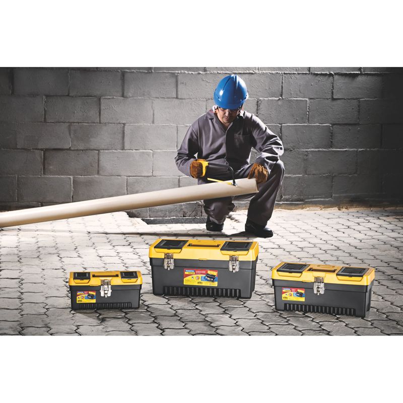 Mantener las herramientas organizadas y facilitar el transporte de las piezas de un lado a otro es la finalidad de las cajas plásticas de Tramontina MASTER, que tienen bandeja removible y traba metálica. Indispensables para los que les gusta dejar las herramientas siempre en orden, las cajas también son ideales para guardar artículos de pesca, entre otros accesorios. Porque no basta sólo con tener la herramienta correcta, es necesario también tenerla siempre a mano.