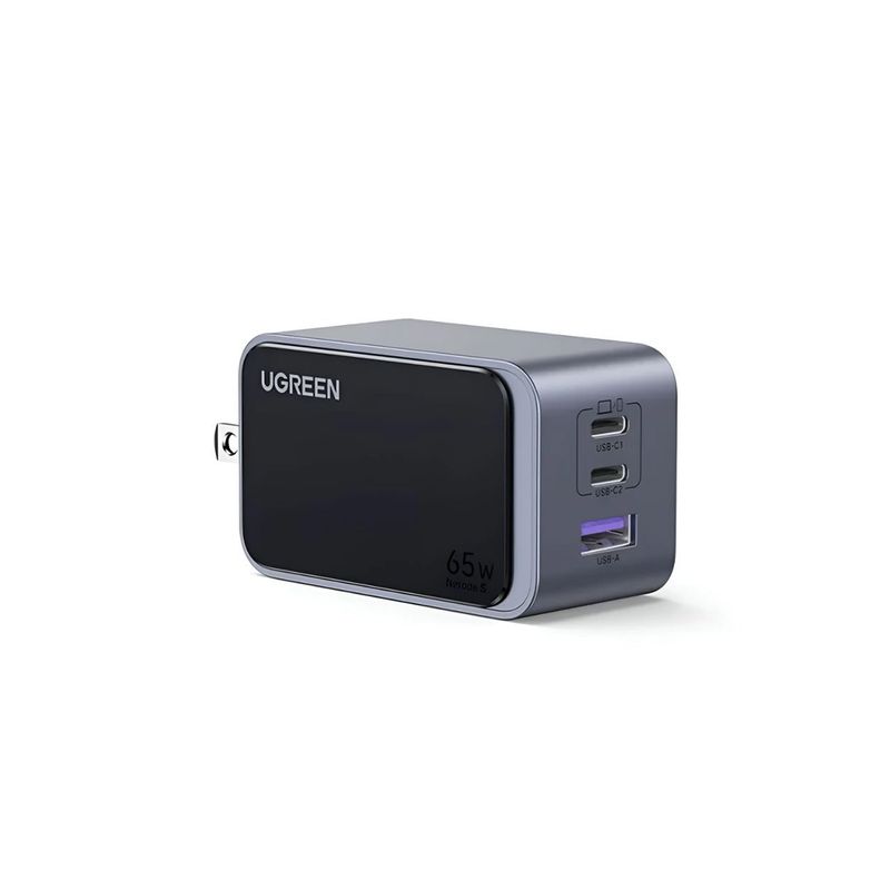 El cargador rápido UGREEN Nexode S 65W con tecnología GaN ofrece una carga potente, eficiente y segura para múltiples dispositivos. Con tres puertos (2 USB-C y 1 USB-A), permite alimentar simultáneamente laptops, smartphones, tablets y otros gadgets con la máxima velocidad y estabilidad. Su diseño compacto lo hace ideal para uso en casa, oficina o viajes.
