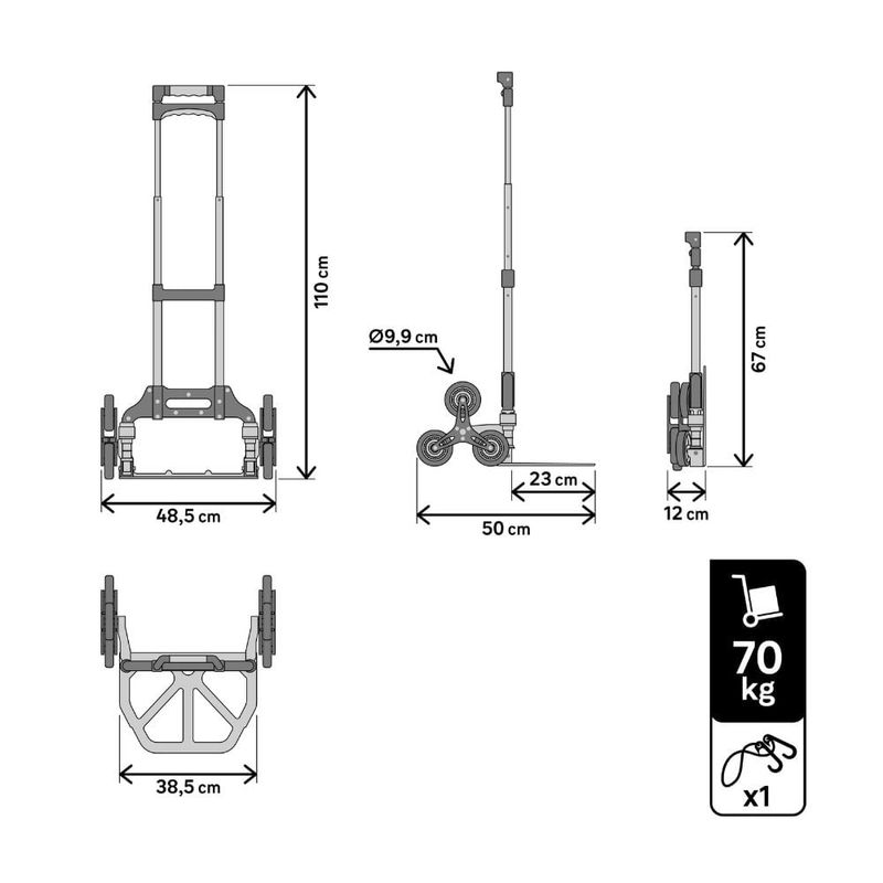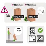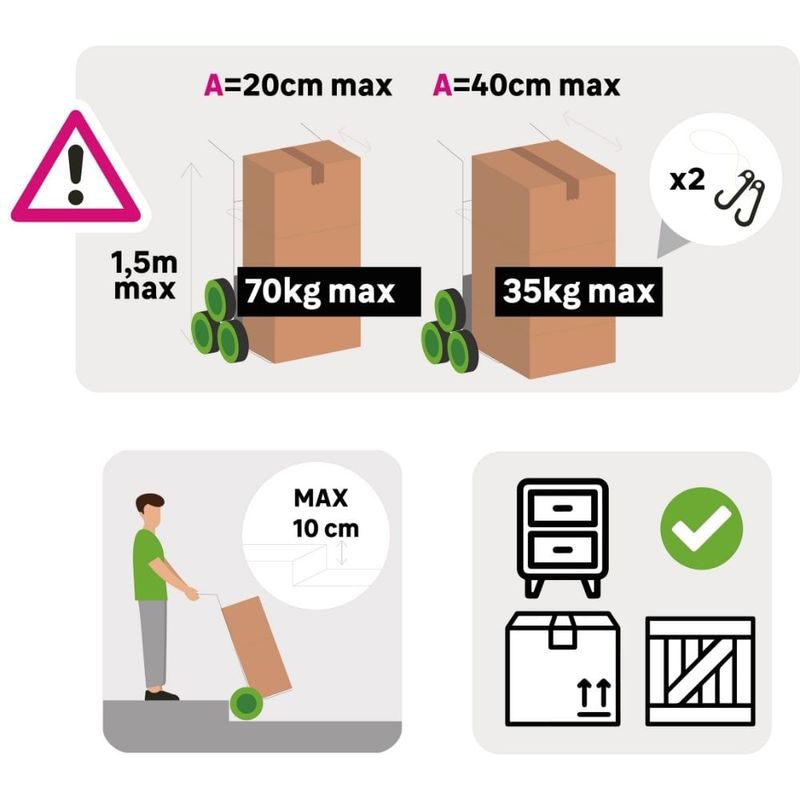 Es ideal para mover cajas, materiales y mercancías en suelos duros, como aceras, aparcamientos y entradas de vehículos.