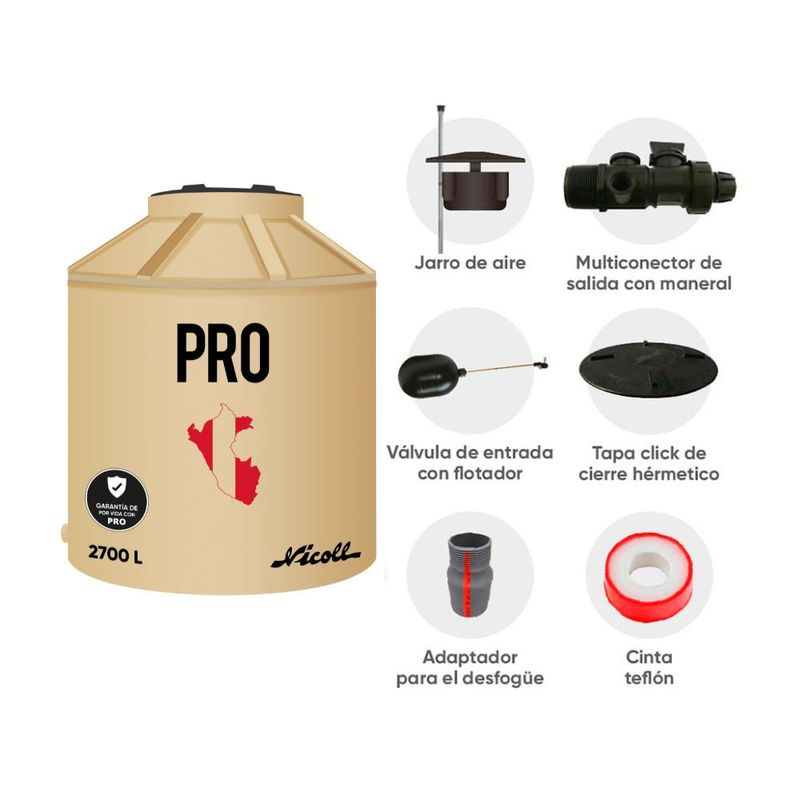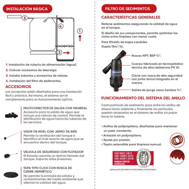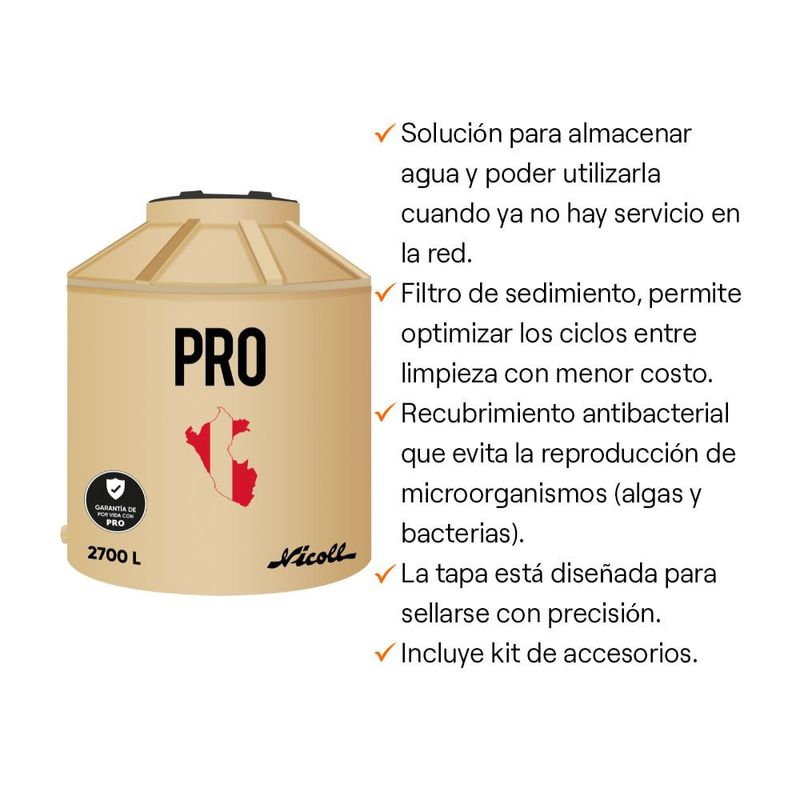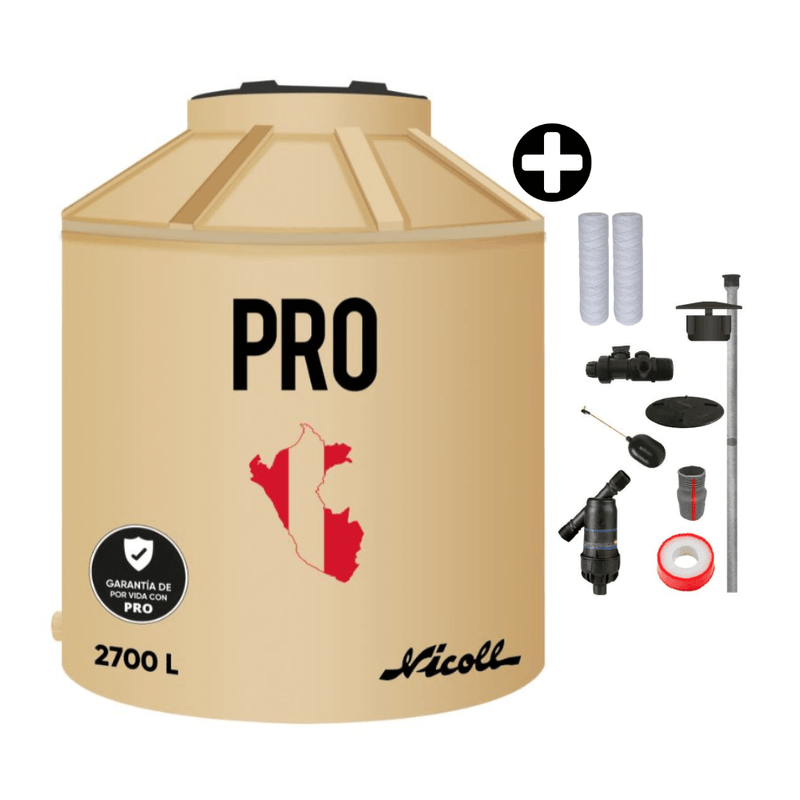Construccion y herramientasGasfiteriaTanques de Agua y AccesoriosCOMBO Tanque de agua Arena Pro 2700 litros + Kit de Accesorios + 2 Cartuchos Repuesto Filtro De Sedimentos 5u Agua Vida