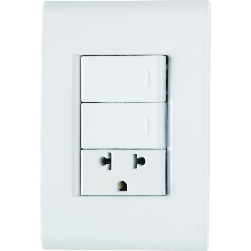 Con el Conjunto 4x2 con 2 Interruptores Sencillos 10-15 AA 250 V y 1 Enchufe 2P+T 10-15 A 250 V Tramontina Liz Blanco, iluminas tus ambientes y prendes equipos de forma funcional y práctica. Fabricado en termoplástico blanco, va a garantizar más practicidad y proporcionar una terminación perfecta entre la plaqueta y la pared, sin dejar rendijas ni dobleces en la instalación. Además, tiene agujero oblongo, que facilita la fijación y el regulado de la plaqueta a la pared, evitando que quede desalineada. Su fijación no es aparente y puede utilizarse tanto en paredes de material como de madera. La plaqueta, además, se puede cambiar por otros colores de la línea, garantizando más versatilidad. Deja tu casa equipada y completa con Tramontina.