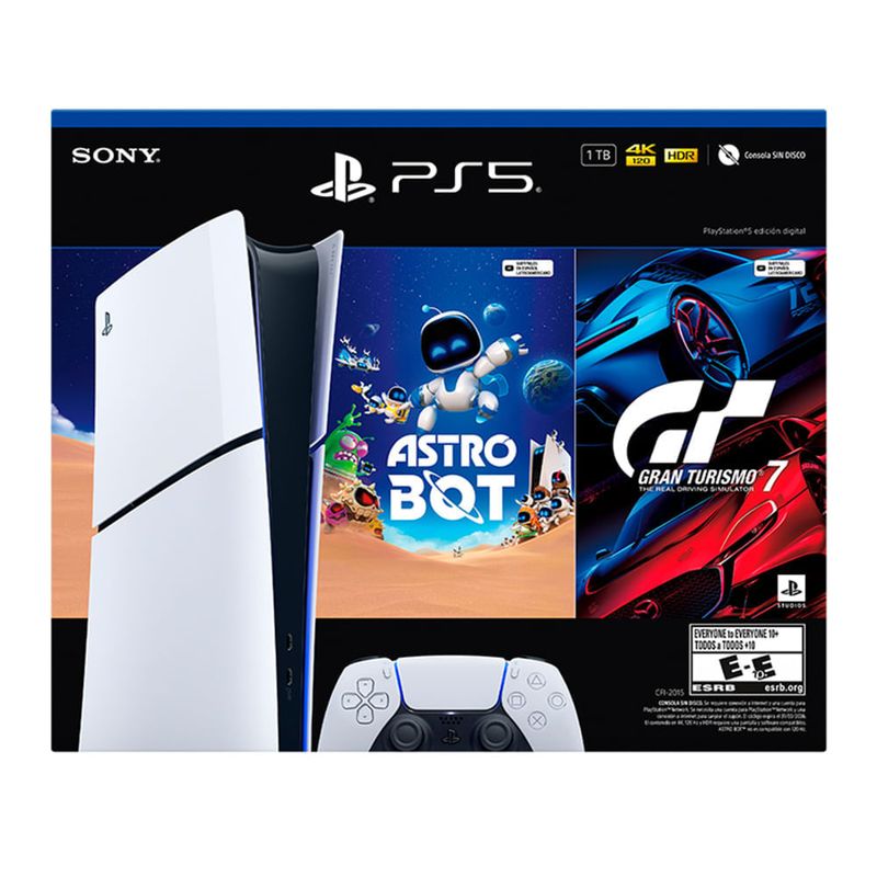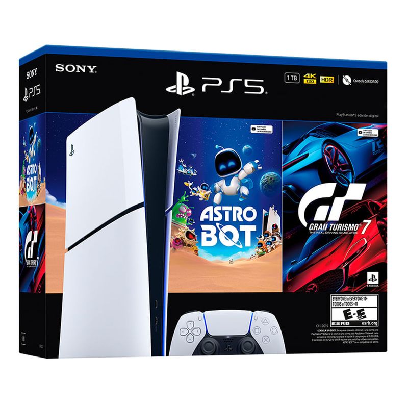 Vive la nueva generación de videojuegos con la Consola Digital PlayStation 5 en su edición especial Bundle Gran Turismo 7 + Astro Bot. Diseñada para ofrecer un rendimiento sin precedentes, integra una unidad SSD ultrarrápida que reduce drásticamente los tiempos de carga y permite experiencias de juego más fluidas e inmersivas. Su arquitectura de alto rendimiento con CPU y GPU personalizadas brinda gráficos de última generación con soporte para trazado de rayos, colores vibrantes y detalles realistas.