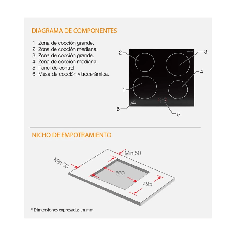 ElectrohogarCocinaCocinas Empotrables y EncimerasEncimera de inducción eléctrica Sole 60cm