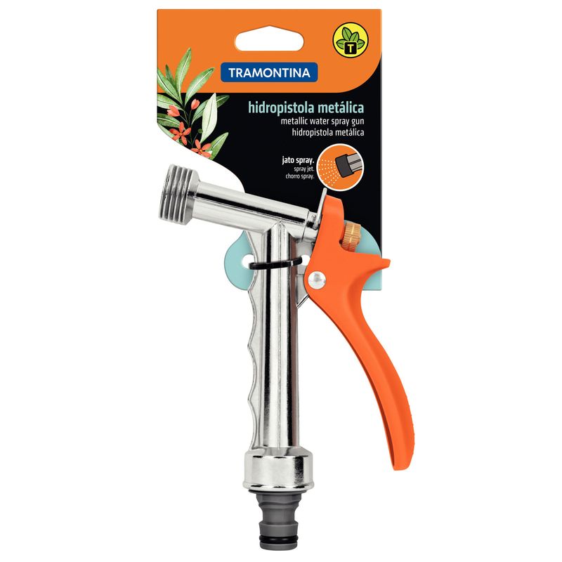 Con la hidropistola metálica para acople rápido Tramontina, tendrás un excelente equipo para cuidar tu jardín. El producto tiene traba de accionamiento para facilitar el manejo, además de acople rápido. La hidropistola tiene regulado de presión del chorro de agua y de salida de agua al alcance de la mano.