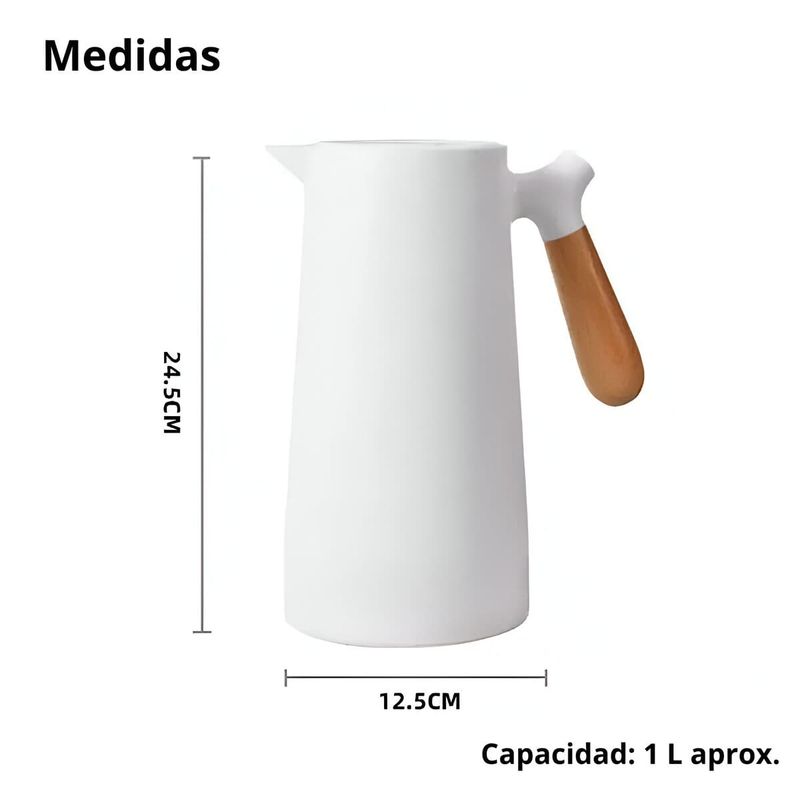 ¡Disfruta del placer de tener algo hermoso con mucha utilidad! Esta jarra termo minimalista de 1 litro es todo eso. La combinación de su mango de madera y su estilo sencillo es perfecta para el usuario moderno. Deja que esta jarra que conserva tus bebidas calientes o frías todo el día te acompañe durante un largo viaje, una tarde gélida o una reunión entre amigos. ¡Una decisión para quedarse caliente!