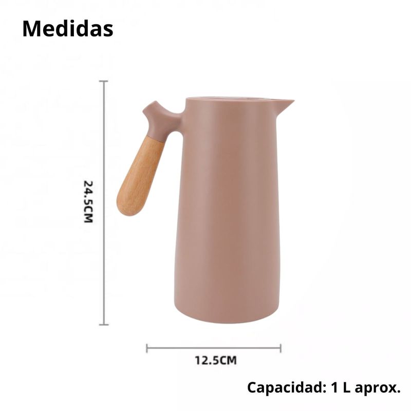 ¡Disfruta del placer de tener algo hermoso con mucha utilidad! Esta jarra termo minimalista de 1 litro es todo eso. La combinación de su mango de madera y su estilo sencillo es perfecta para el usuario moderno. Deja que esta jarra que conserva tus bebidas calientes o frías todo el día te acompañe durante un largo viaje, una tarde gélida o una reunión entre amigos. ¡Una decisión para quedarse caliente!