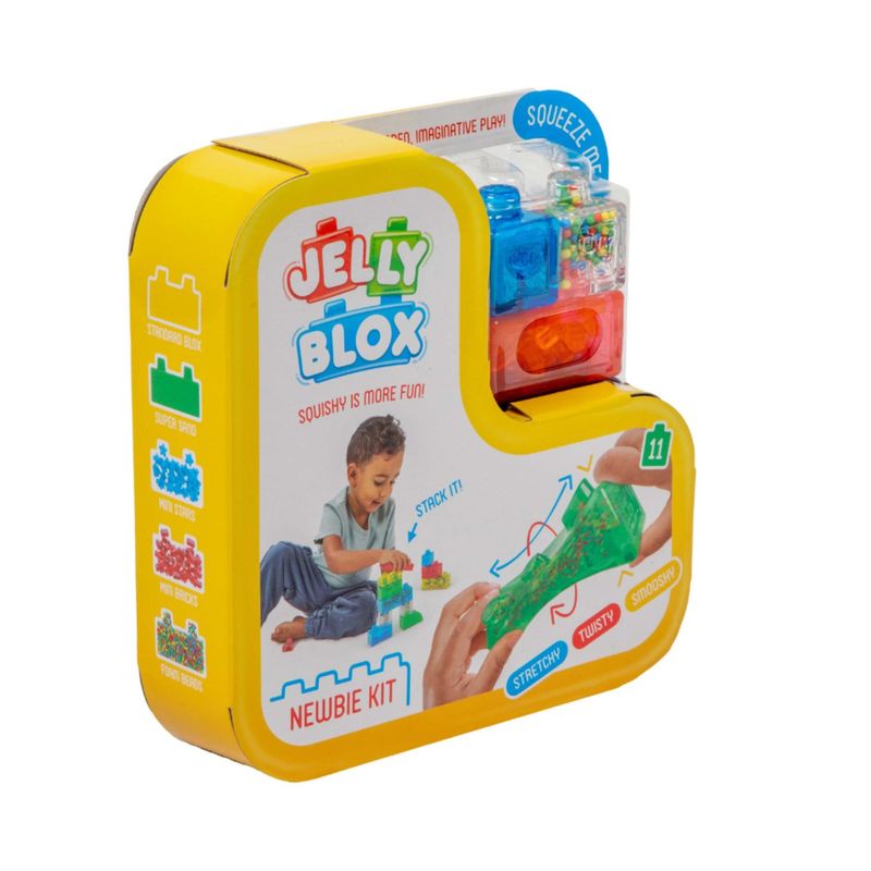 El Newbie Kit es la puerta de entrada al mundo mágico de Jelly Blox: 11 bloques sensoriales suaves y coloridos que invitan a los más pequeños a descubrir la alegría de construir.