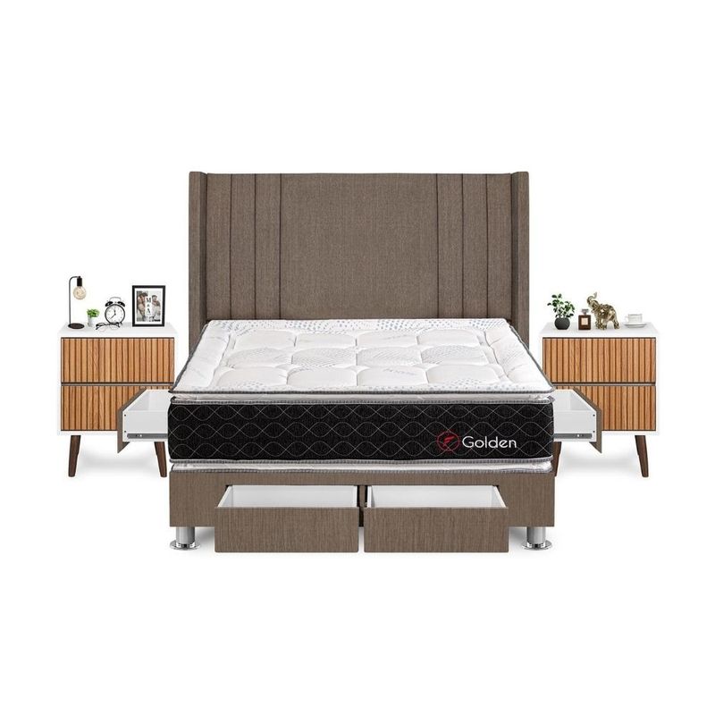 DormitorioCama EstándarKingJuego de Dormitorio Forli Golden 4 Cajones King Marrón + Velador Milan