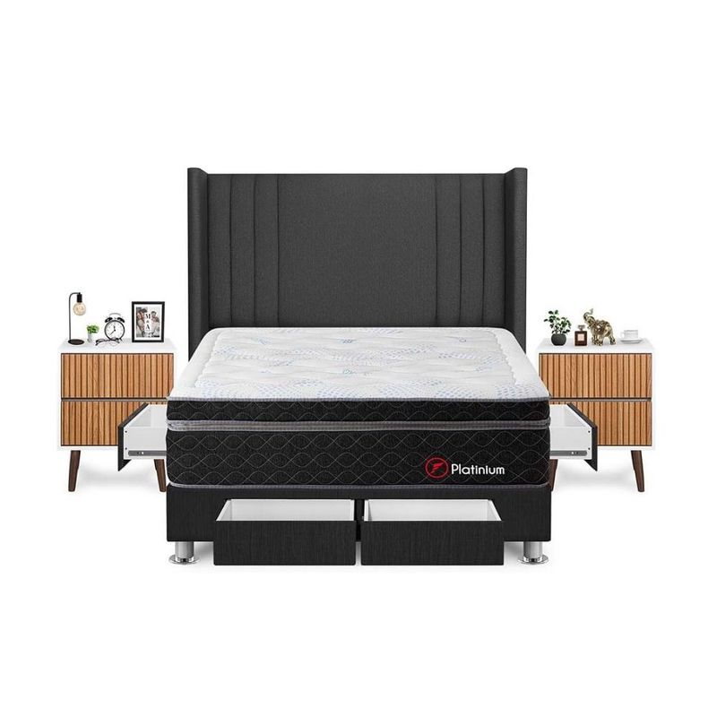 DormitorioCama EstándarKingJuego de Dormitorio Forli Platinium 4 Cajones King Gris + Velador Milan