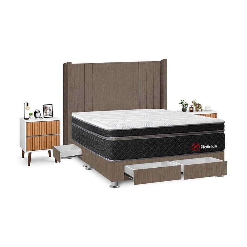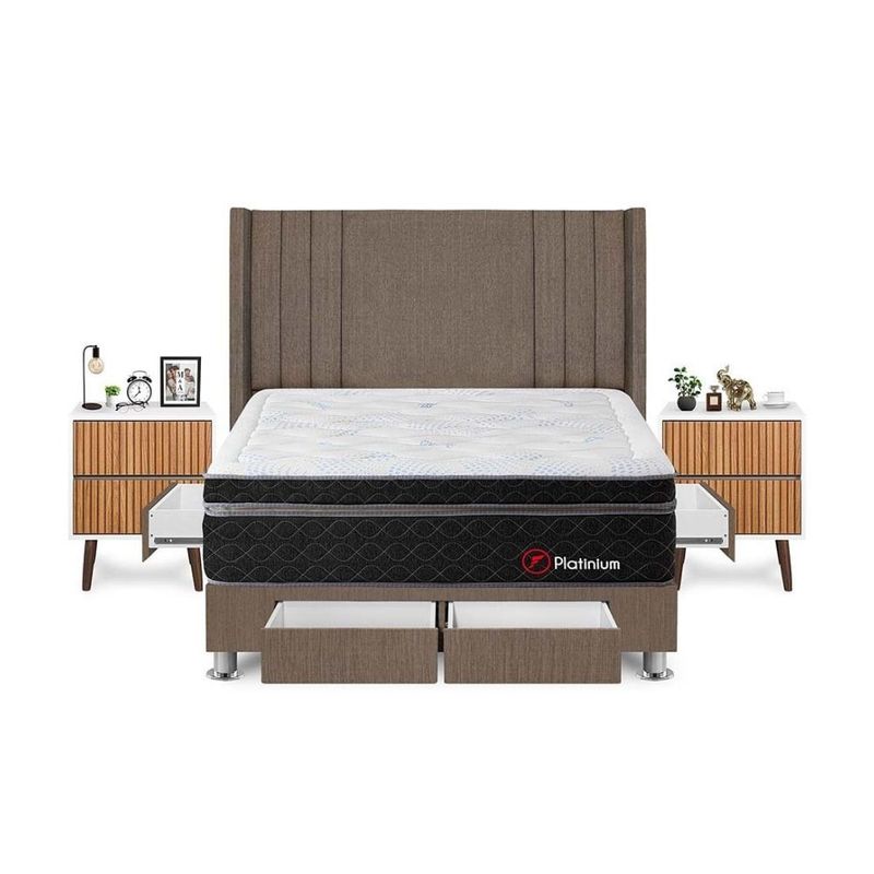 Juego de Dormitorio Forli Platinium 4 Cajones King Marrón + Velador Milan. Disfruta de lo más nuevo que Promart.pe trae para ti.