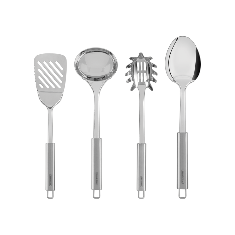 Su cocina tendrá un toque de estilo con el juego de utensilios Tramontina de acero inoxidable 4 piezas de la línea Marffim. Hechos de acero inoxidable que les da elegancia, poseen un agujero en el mango, transformándolos en la elección perfecta para decorar el ambiente más agradable de la casa. El material altamente durable, garantiza resistencia en las 4 piezas del juego. Su higiene es muy fácil, pueden lavarse diariamente en el lavavajillas.