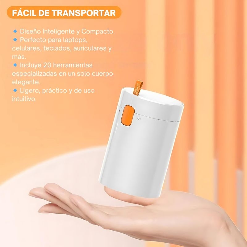 Este Kit De Limpieza 20 en 1 es ideal para mantener limpios y sin daños los teléfonos celulares, teclados, laptops, tablets y audífonos con cable o bluetooth. Es portátil se puede llevar a donde sea, esta equipado con limpiadores de entradas USB puertos pantallas cepillos de cerdas suaves y mas herramientas necesarias para sus aparatos electrónicos.