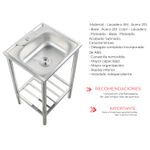 Este lavadero con soporte ofrece durabilidad, funcionalidad y diseño moderno gracias a su fabricación en acero inoxidable 201 con acabado satinado. Su estructura independiente lo hace versátil y fácil de instalar en cocinas, lavanderías o áreas de trabajo, optimizando el espacio con estilo.