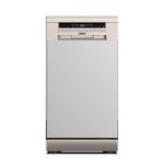 Con él, usted no solo ahorra tiempo y energía, sino que también se asegura de que todos sus cubiertos, utensilios y ollas queden limpios. Posee un cesto superior con regulación de altura. Este ajuste es simple y puede ser hecho incluso con la vajilla ya colocada dentro del cesto. Para una mejor visualización y facilidad de uso, la pantalla posee letras blancas. El acabado, en acero inoxidable con un tratamiento contra huellas digitales, combina con cualquier estilo de cocina. Gracias a sus funciones de prelavado, rápido 36, rápido 60, delicado, eco y pesado, nuestro lavavajillas es ideal para cualquier tipo de vajilla o suciedad. Para no perturbar su tranquilidad, este lavavajillas solo emite 49 decibelios de ruido. Y para garantizar un secado perfecto de toda su vajilla, este modelo incluye la función adicional de secado. Además, el panel se puede bloquear para evitar accidentes o cambios accidentales de los ajustes. Finalmente, este lavavajillas es ideal para espacios compactos, ya que ocupa poco espacio en la cocina y posee una gran eficacia en el lavado de la vajilla. ¡Adquiera ya mismo el suyo!