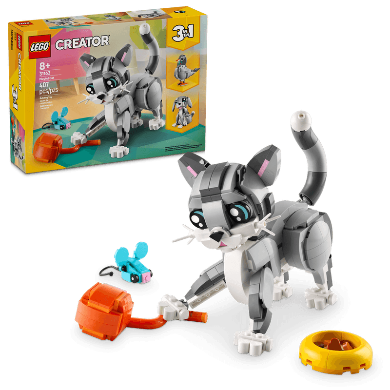 - 3 mascotas de juguete alternativas para construir en 1 caja: El set de construcción LEGO® Creator 3en1 Gato Juguetón para niñas y niños a partir de 8 años les permite construir y reconstruir 3 animales de juguete diferentes con los mismos ladrillos