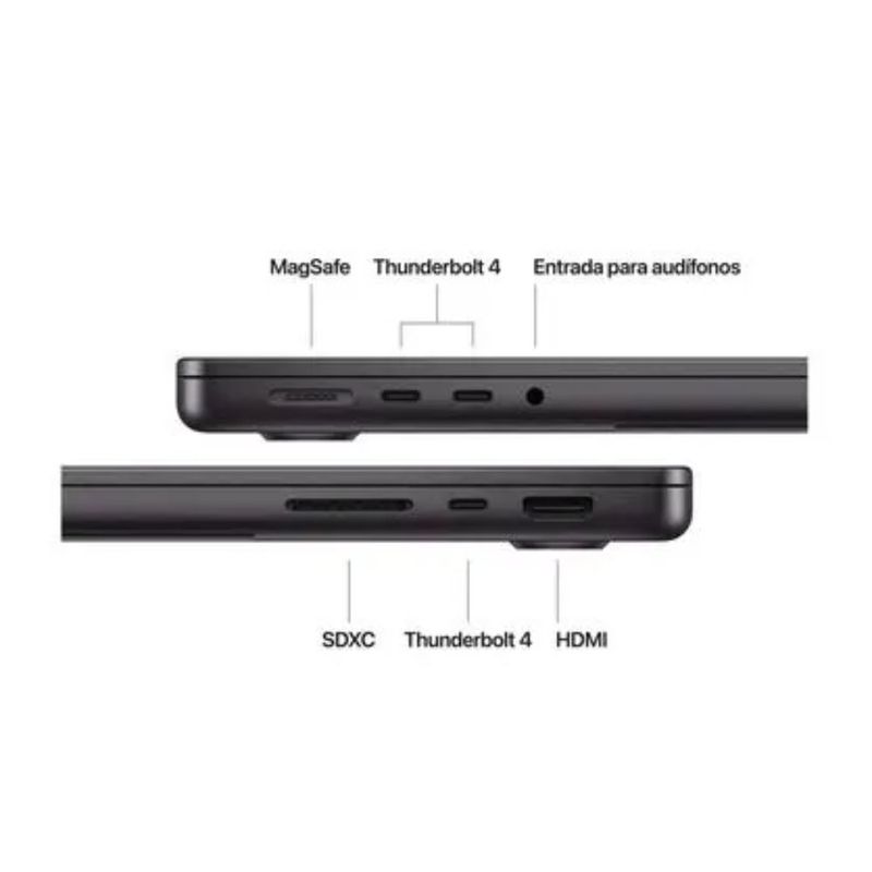 La MacBook Pro cuenta con la línea de chips más avanzada jamás diseñada para una computadora portátil profesional. Rendimiento fenomenal de CPU monoproceso y multiproceso, memoria unificada más rápida, aceleradores de aprendizaje automático mejorados: la familia de chips M4 te brinda el tipo de velocidad y capacidad que nunca creíste posible. Y el poderoso Neural Engine hace que las tareas de IA, como el escalado de imágenes y la creación de subtítulos de video, así como las funciones de Apple Intelligence en el dispositivo, sean todo un éxito.