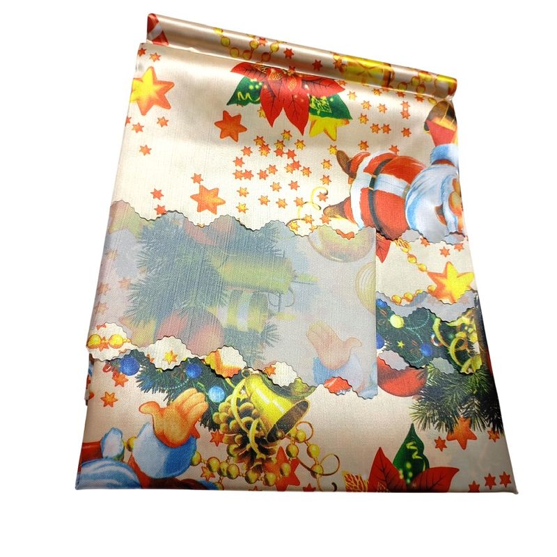 Protector oblongo multiusos de 220x150 cm, 100 por ciento de poliéster para buffet de comida, bodas, fiesta de cumpleaños, cena de Navidad, mantel de moda características patrón de campana de Santa impreso.
