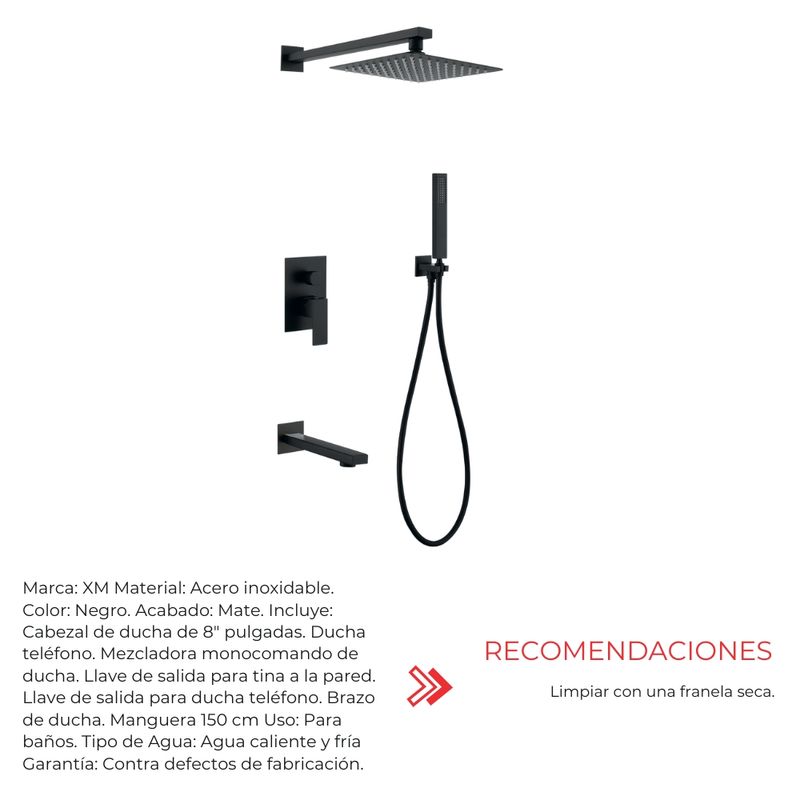 Renueva tu baño con este elegante juego de ducha empotrada, elaborado en acero inoxidable con acabado negro mate , que aporta estilo moderno y resistencia a la corrosión. Ideal para quienes buscan lujo, practicidad y durabilidad en un solo producto.