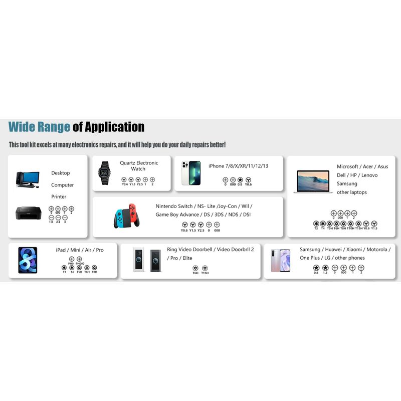 Uso recomendado: electrónica, relojería, PC, consolas, drones, teléfonos, mantenimiento TI