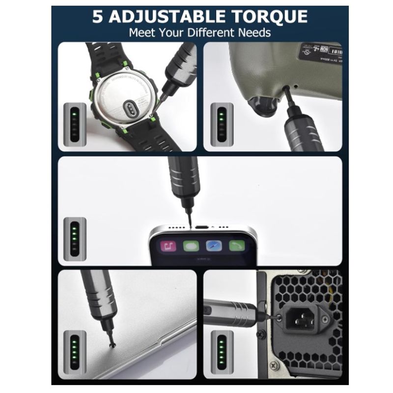 Es la herramienta definitiva para reparaciones electrónicas de precisión. Compacto, ergonómico y potente, combina 200 RPM, 5 niveles de torque y 64 puntas de acero S2 para adaptarse a todo tipo de dispositivos: laptops, relojes, consolas, smartphones, drones, cámaras y más.