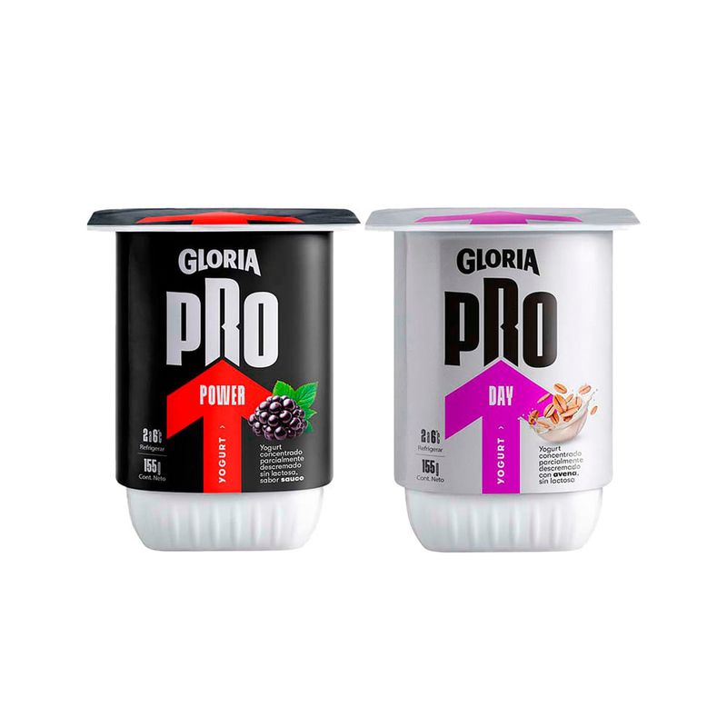 Pack Yogurt GLORIA Pro Day Sabor Avena Vaso 155g + Yogurt GLORIA Pro Power Sabor Sauco Vaso 155g