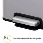 Fabricada en acero inoxidable resistente y fácil de limpiar. Sistema de apertura con pedal higiénico y práctico. Ideal para cocinas, oficinas, baños o espacios reducidos.