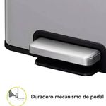 Fabricada en acero inoxidable resistente y fácil de limpiar. Sistema de apertura con pedal higiénico y práctico. Ideal para cocinas, oficinas, baños o espacios reducidos.