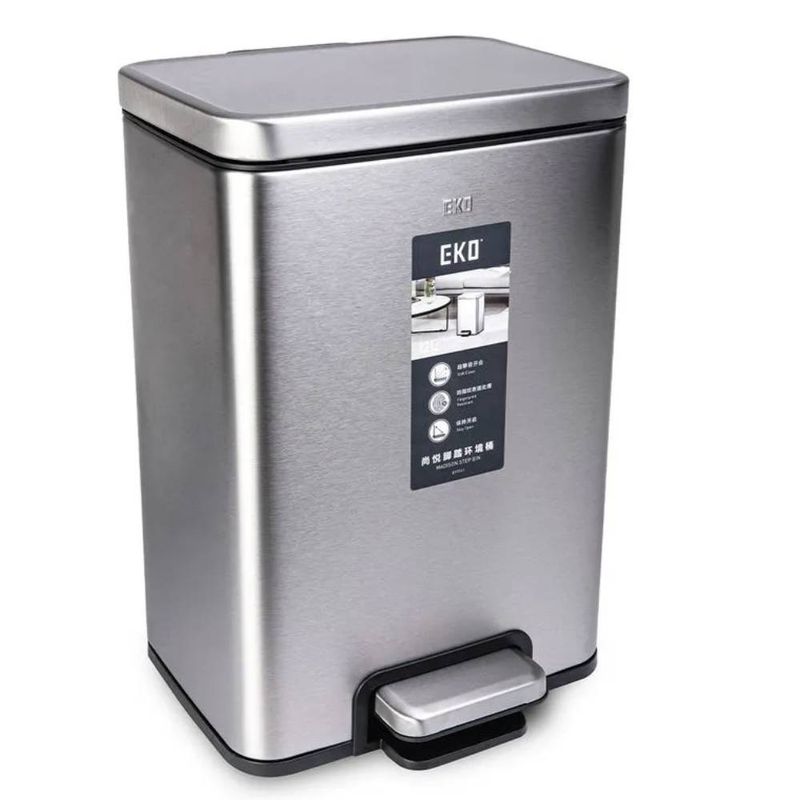 Papelera con pedal de Acero Inoxidable 12 L (27.2x39 cm) de la marca Eko, ideal para cocinas y baños.