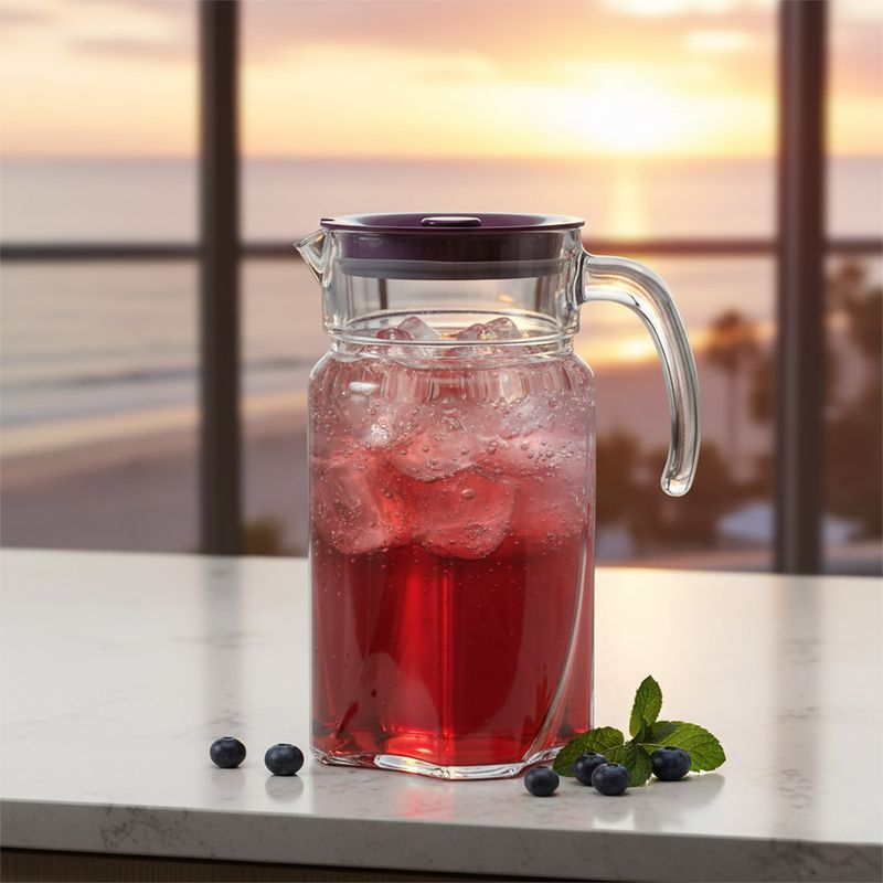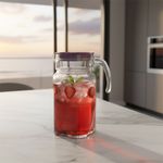 Te presentamos la Jarra Luna Pasabahce Vidrio 1.75 Lt con Tapa Morada. Esta jarra de la prestigiosa marca turca Pasabahce es un contenedor de agua hecho de vidrio grueso y cristalino, diseñado para servir bebidas frías con la máxima elegancia.