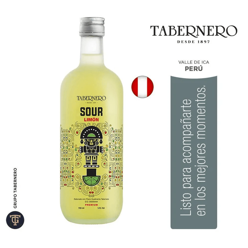 SupermercadoBebidas y LicoresLicoresPiscoPisco Sour TABERNERO Limón Botella 700ml