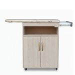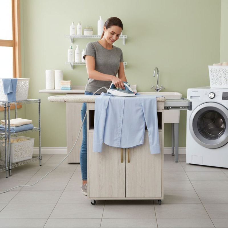 Sus amplios compartimentos con puertas te permiten mantener todo ordenado: desde productos para el cuidado de la ropa hasta prendas listas para planchar. Gracias a sus ruedas inferiores, puedes moverlo fácilmente dentro de tu hogar sin esfuerzo.