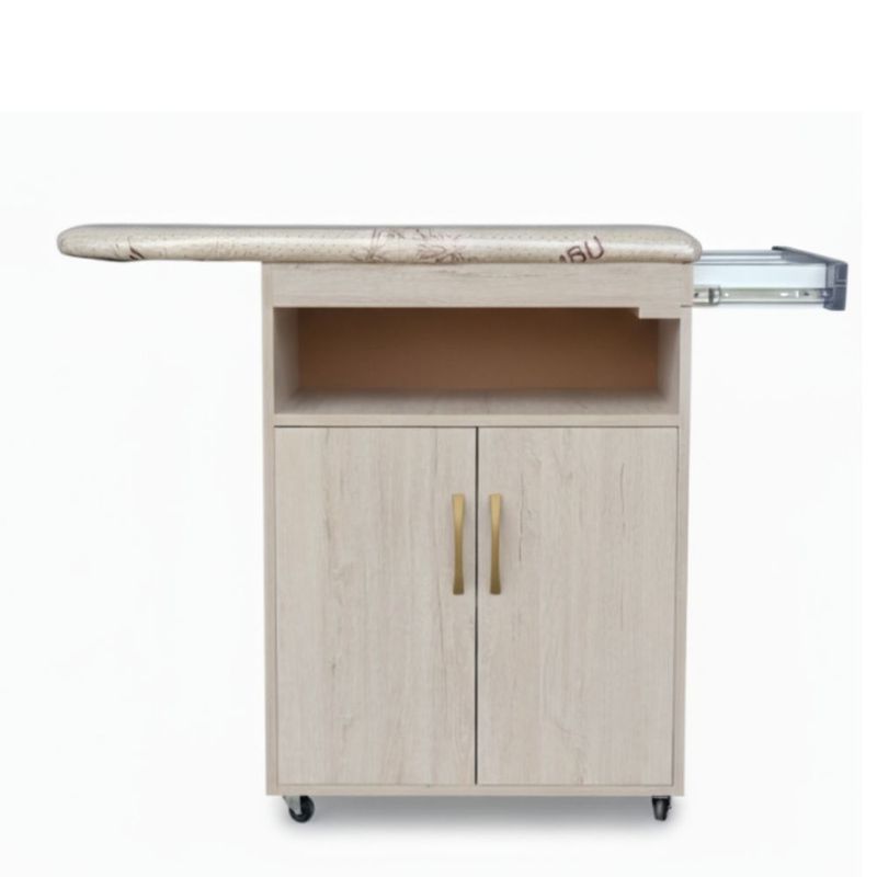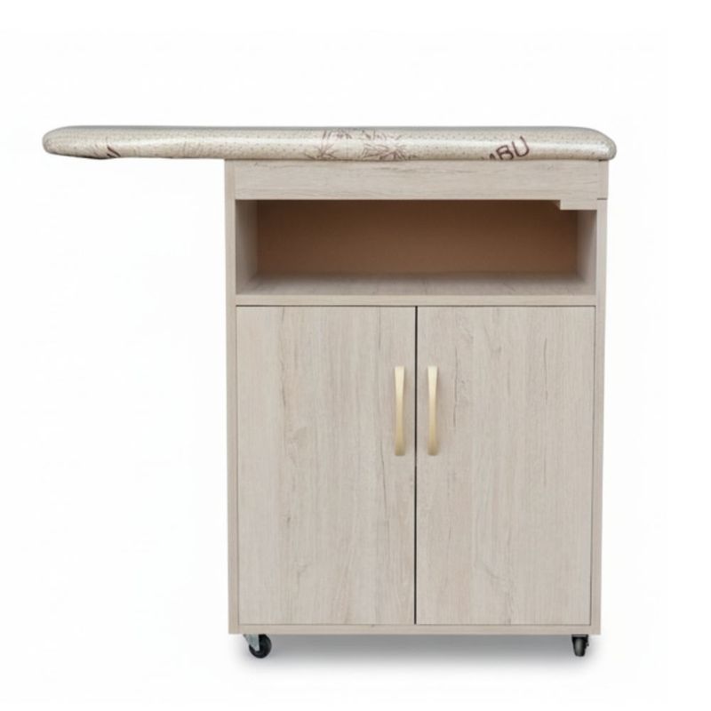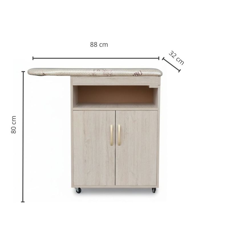 Optimiza tus tareas de planchado con el mueble planchador arena con ruedas, un diseño funcional y elegante que combina practicidad y estilo. Fabricado en melamina de alta resistencia, cuenta con una bandeja deslizable lateral para colocar la plancha mientras la usas, evitando accidentes o quemaduras.