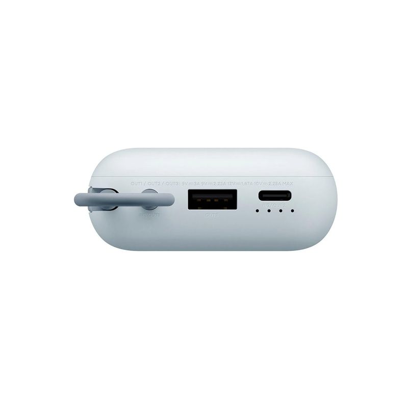 Equipado con salida USB-C y USB-A, soporta carga rápida bidireccional de hasta 22.5W, permitiendo recargar varios dispositivos con velocidad y seguridad.