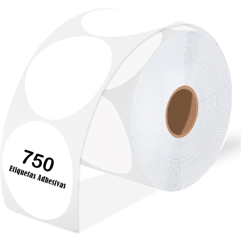 UN ROLLO DE 750 ETIQUETAS TERMICA ADHESIVA CIRCULAR BLANCA D(5cm)