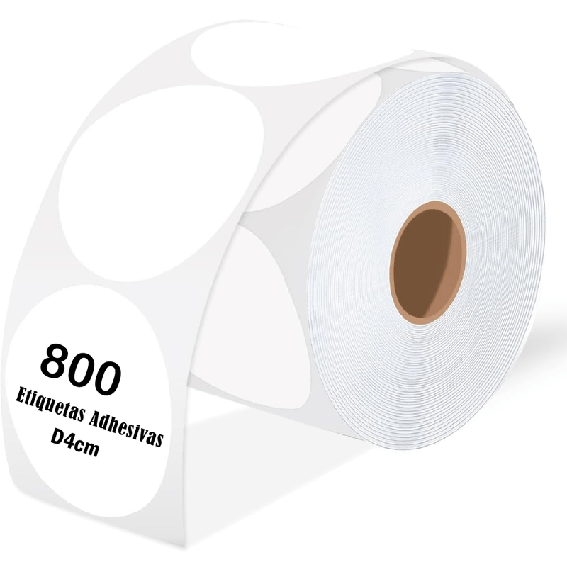 UN ROLLO DE 800 ETIQUETAS TERMICA ADHESIVA CIRCULAR BLANCA D4cm