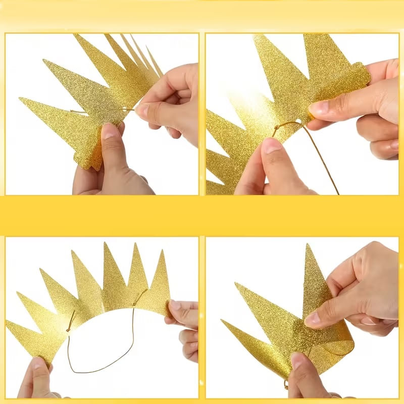 Medidas: 23cm de largo x 9cm de alto, incluye cordón dorado para armar la corona.