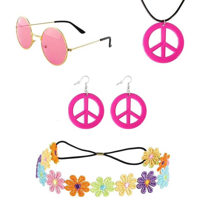 Pensando en disfrazarte de hippie o temática de los años 70? Entonces este set no te puede faltar!