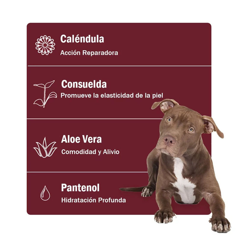 Aplicación: Aplicar sobre la piel limpia y seca de tu mascota, extendiendo bien hasta su total absorción.