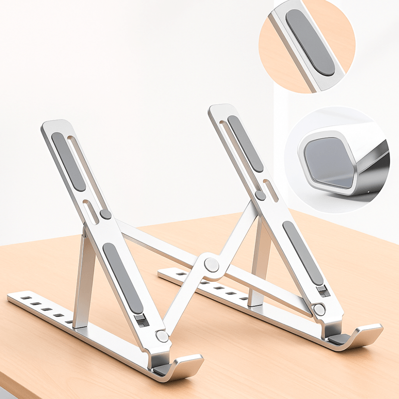 El soporte para laptop está diseñado para mejorar tu comodidad y salud. Al elevar la pantalla a la altura ideal, reduce la tensión en la columna cervical, evitando que tengas que inclinar el cuello y aliviando la presión en esa zona. Además, favorece una postura correcta al sentarte frente a la computadora.