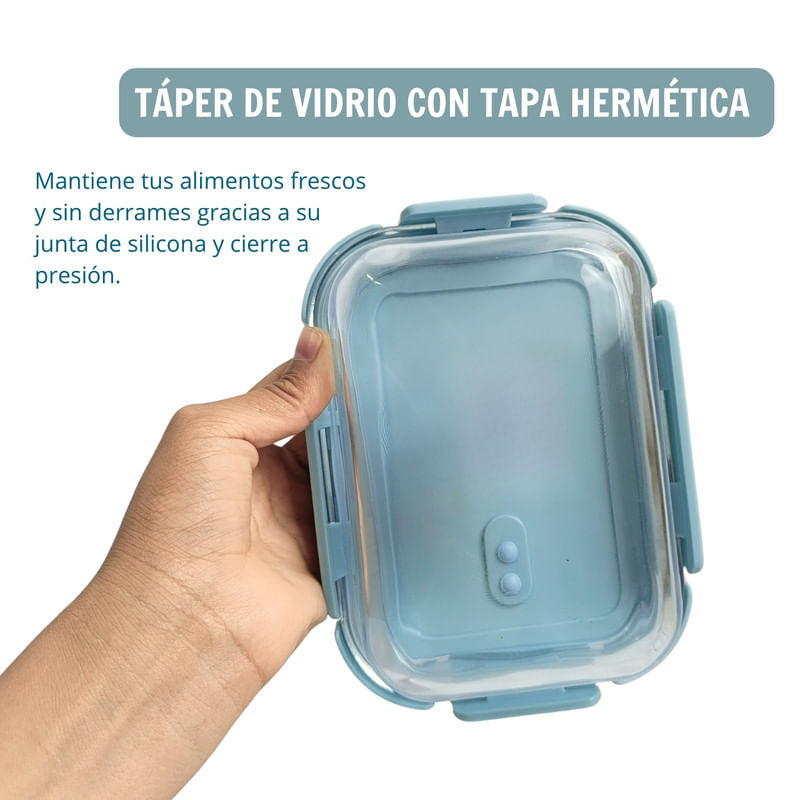 Taper De Vidrio 700ml Hermético y Práctico 3 Unidades Celeste
