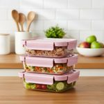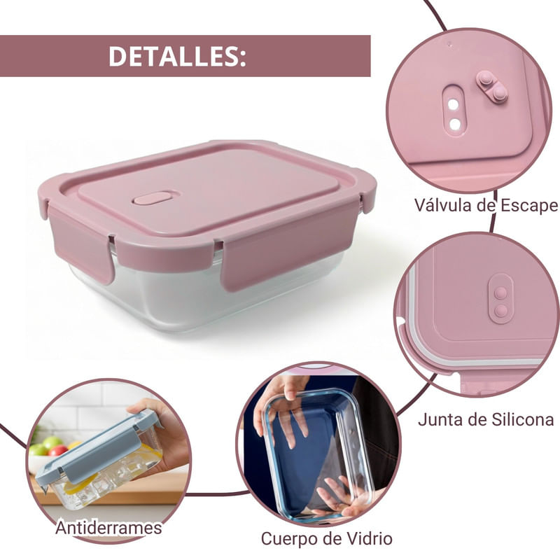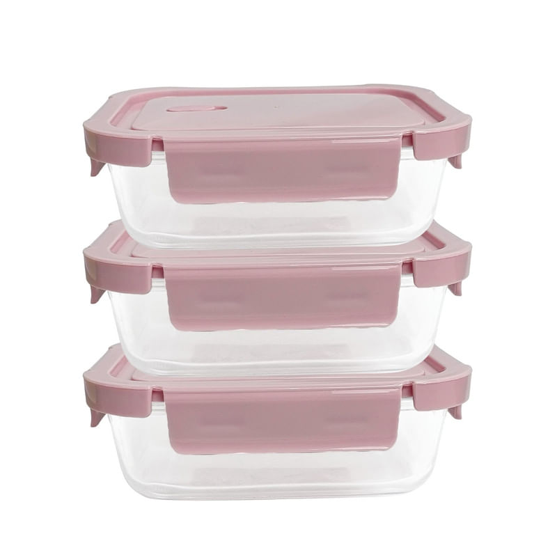 Taper De Vidrio 700ml Hermético y Práctico 3 Unidades Rosado
