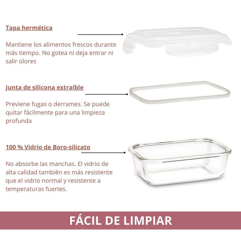 3 recipientes herméticos de vidrio templado.